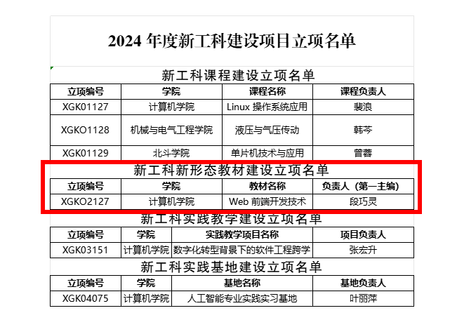 在主持完成校级核心课程《Web前端开发技术》的建设中,段巧灵老师突破传统课堂的界限,引入了企业真实项目案例,构建了“理论+虚拟仿真+实战”的三维教学模式。这一教学改革成果最终形成省级新工科项目——新形态教材《Web前端开发技术》,该教材内嵌在线视频讲解和互动式练习题,致力于为学生打造一个全方位、沉浸式的学习环境,帮助他们紧跟技术发展的步伐。
